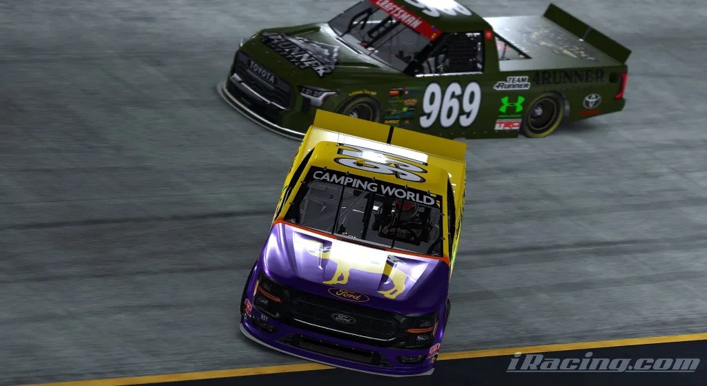 With the laps winding down and fuel tanks running dry, Jaron Valley—one of the front runners on the edge of making it to the finish—lost control and slapped the wall. Miraculously, the incident didn’t trigger a caution, despite the close call for several trucks nearby. For those gambling on strategy, it was a heart-pounding moment that could’ve flipped the race on its head.